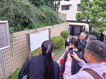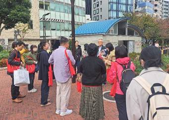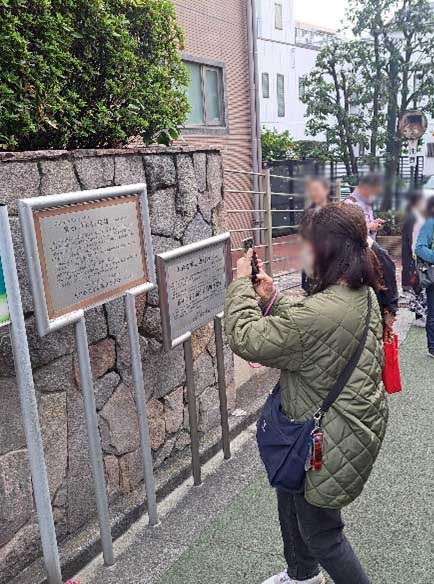 本学名誉教授の原聖先生から創立125周年を迎えた女子美の歴史の解説をいただきながら、創立者の一人「横井玉子」ゆかりの地「築地・谷中」や、明治・大正時代の校舎跡地である「本郷」などを巡りました。