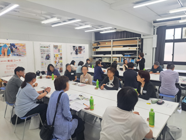 ![]() ▲教員との懇談会の後半では、各専攻・領域・コースに分かれて、先生方との懇談を行いました。杉並キャンパスに設置されている領域・コースでは、普段学生が使用している教室で懇談を実施し、施設や作品の見学も行いました。キャリア支援担当者と個別にご相談をされた方も多くいらっしゃいました。 |