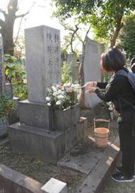【④谷中霊園で横井玉子のお墓参り】